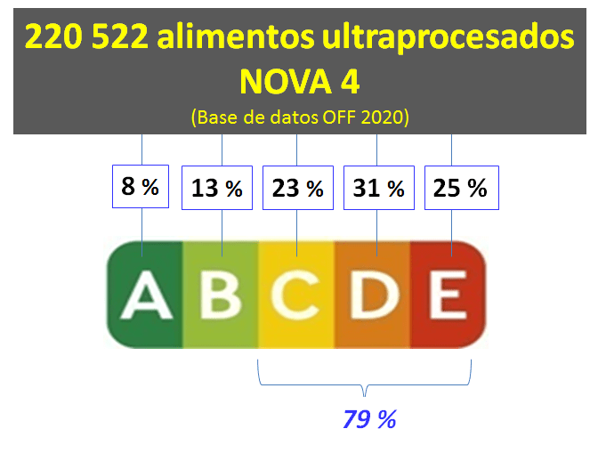 - Los límites de la interpretación de la figura que presenta el porcentaje de alimentos ultraprocesados en función de las clases de Nutri-Score. ¿Cuál es la realidad?