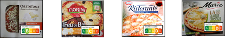 Le Nutri-Score apparait également intéressant pour montrer aux consommateurs les différences majeures qui peuvent exister dans la qualité nutritionnelle de produits alimentaire portant le même nom (par exemple entre les « pizzas au fromage », les « biscuits au chocolat », ,…), mais de marques différentes (figure 3). Même si les recommandations nutritionnelles rappellent que la consommation de ces produits (pizza, biscuits au chocolats, …. doit être globalement limitée, il est important de permettre aux consommateurs d’identifier au sein de ces aliments, la marque avec une meilleure qualité nutritionnelle. Cette objectivation par le Nutri-Score pourrait notamment encourager les entreprises à reformuler leurs produits pour s’aligner sur leurs concurrents.