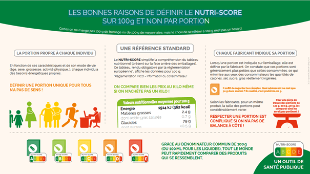 Fiche d’information 2 sur #NutriScore: « Les bonnes raisons de définir le Nutri-Score sur 100g et non par portion »