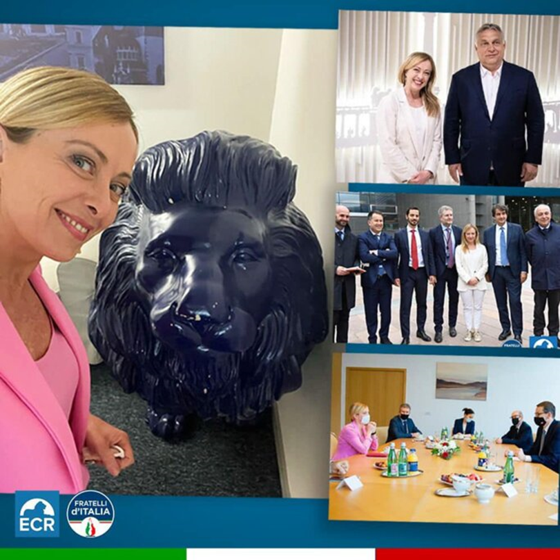 Les photos de la tournée de Giorgia Meloni à Bruxelles, en juin 2021, rassemblées par Fratelli d’Italia. © DR