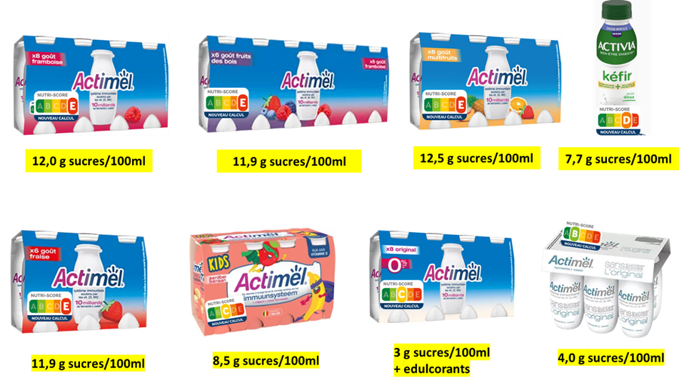All of this raises questions about Danone’s willingness to provide real transparency regarding the nutritional composition of their drinkable yogurts, particularly concerning the unfavorable elements they contain, in order not to “tarnish” the image of these products in the eyes of health-conscious consumers. This seems to explain Danone’s refusal to display the new version of the Nutri-Score on these products, which would legitimately classify them in categories D or E, given their high sugar content (only the plain versions, with no added sugars, containing only the natural sugar from milk, remain classified as B, and those with low sugar content are classified as C).